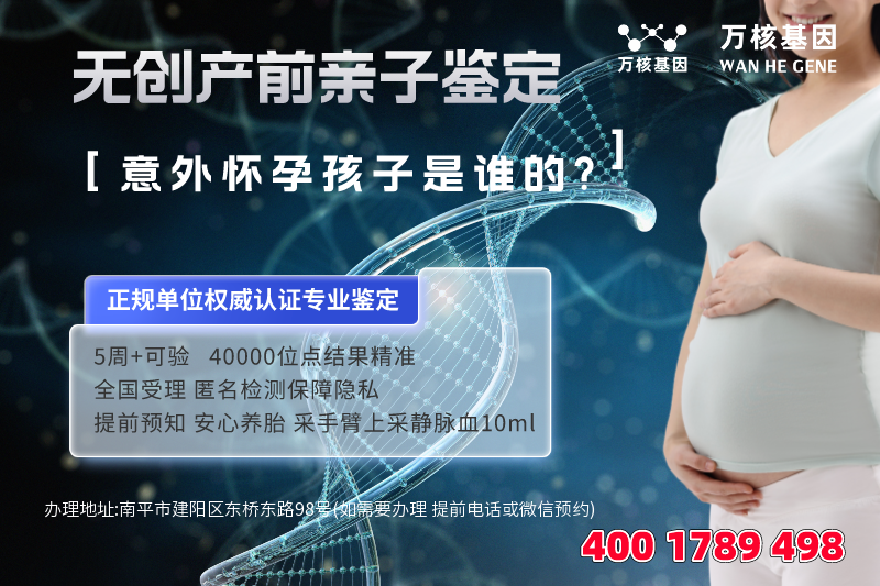 产前无创亲子鉴定,通过采集孕妇静脉血样本来完成dna鉴定、鉴定结果准确度99.9999%。孕妇在怀孕期间不知道胎儿究竟是谁的,或者父亲怀疑胎儿是否亲生,这些情况都可以通过南平产前无创亲子鉴定来确定胎儿与父亲的亲子关系。